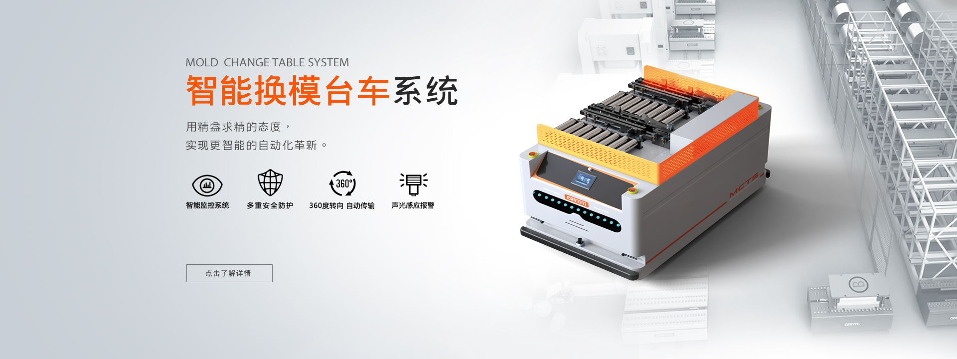 面對市場不斷出現的新挑戰,格萊富助力企業發展,為工業生產提供模具裝夾、模具快換、模具搬運、模具倉儲等完善的換模自動化整體解決方案。使企業不但實現模具快速更換、智能轉運、精益生產,還提高效率,優化工藝,強化競爭優勢...了解更多